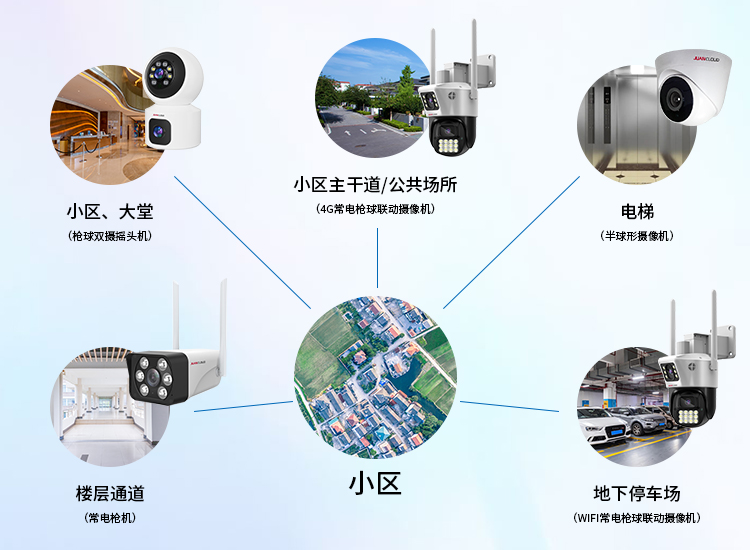(2)弱电协同性:摄像头安装与小区弱电管网(通信线、电源线)统筹规划,采用 POE 供电 + 网络传输模式,减少布线复杂度,契合弱电智能化集成要求。