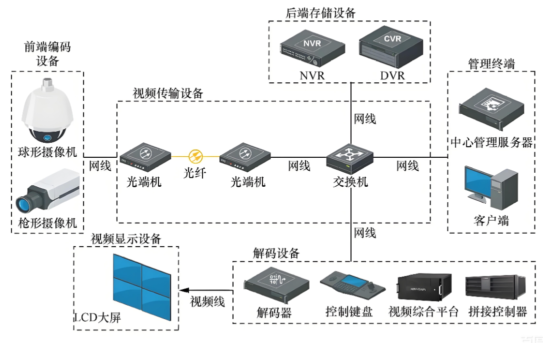 结合社区安防场景需求与风险点分布,方案以“前端AI监控设备+后端智能分析平台+多端联动预警”为核心架构,实现监控覆盖全域化、风险识别智能化、预警处置高效化,构建全方位社区安全防护网。