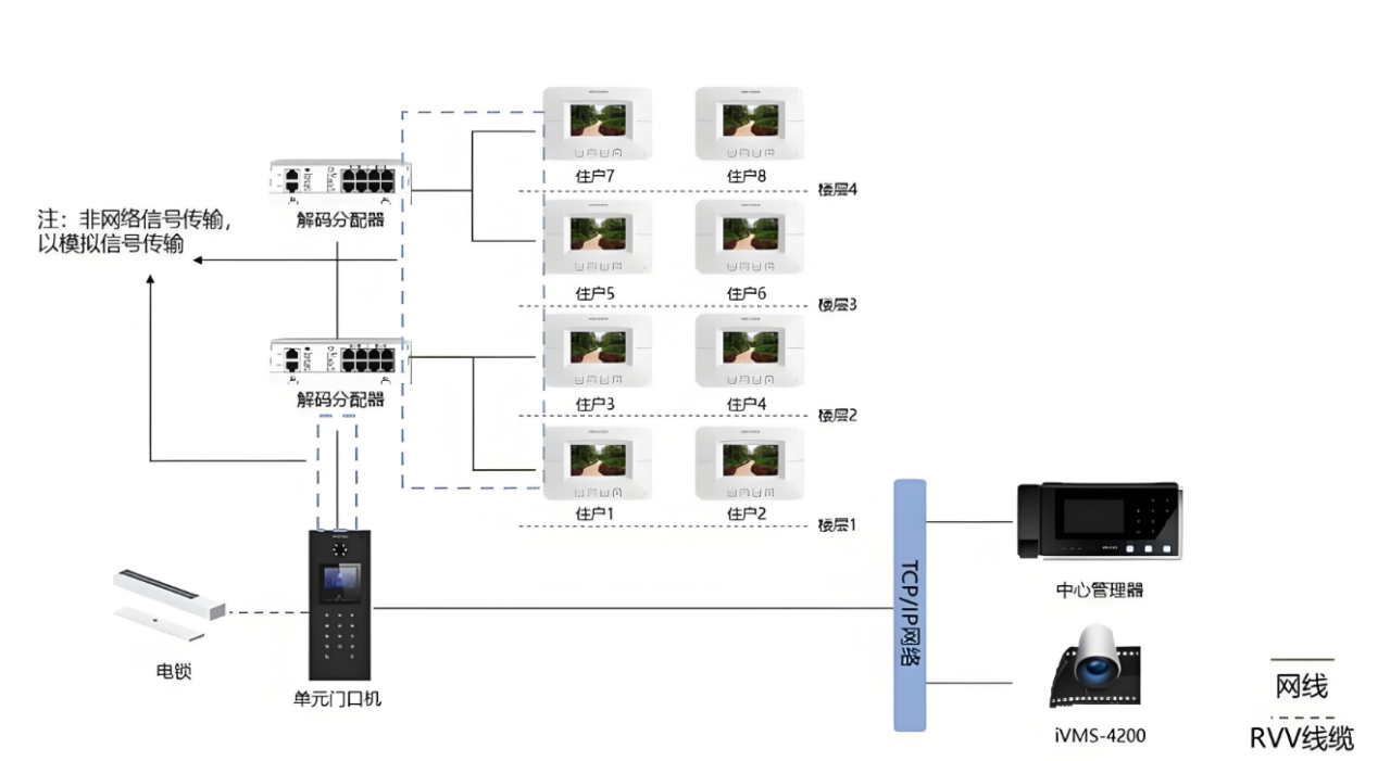 基于调研成果,团队为明河嘉园小区量身定制了一套先进的系统方案。在可视对讲设备方面,选用具备 1080P 高清画质与双向语音降噪功能的一体机,确保居民与访客之间的沟通清晰无阻。同时,该设备支持人脸识别、密码输入以及手机 APP 远程开锁等多种便捷方式,充分满足不同居民的使用习惯。在安防系统构建上,采用具备智能分析功能的监控摄像头,全面覆盖小区出入口、主干道、单元楼以及地下停车场等关键区域。摄像头能够精准识别人员徘徊、翻越围栏等异常行为,并即时向物业安保人员发送报警信息。此外,团队还将可视对讲系统与安防监控系统深度联动,居民在接到访客呼叫时,可直接通过可视对讲设备调取周边监控画面,准确核实访客身份,为安全再添一道保障。