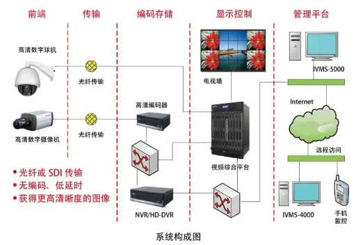2. 光纤与无线传输结合:在小区内铺设光纤网络作为主干传输线路,保障监控视频数据的高速、稳定传输。对于布线困难的区域,采用无线网桥等设备实现无线传输,确保所有监控摄像头的数据都能顺利传输至监控中心。