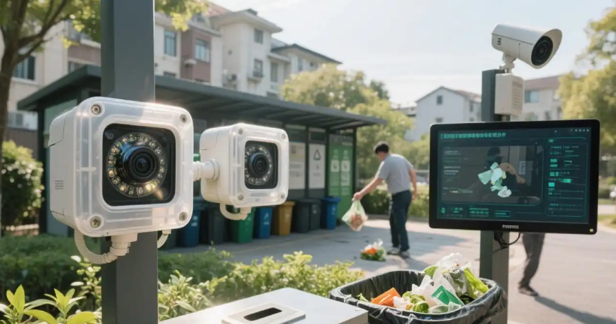 针对上述问题,传统手段难以突破管理瓶颈:人工督导需投入大量人力,与生科院教学科研任务繁重的现状矛盾;单纯的宣传教育对短期行为矫正效果有限;普通监控摄像头仅能记录画面,无法识别分类行为是否合规。垃圾分类摄像头通过 AI 智能识别技术,可自动判断投放行为的规范性,实时预警违规操作,为垃圾管理提供 “智能眼睛” 和 “数据大脑”,成为破解管理难题的关键技术支撑。
