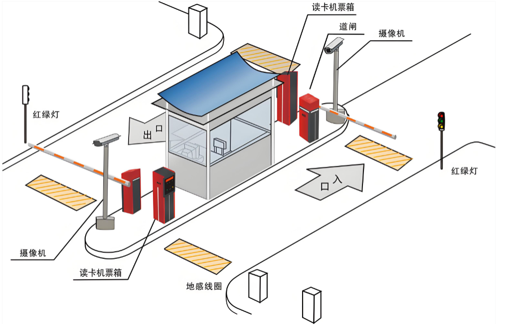 1.出入口规划:根据小区的布局和车辆通行需求,合理规划出入口的位置和数量,确定道闸的安装位置。